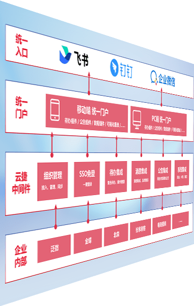 对协作平台提供支持服务,,,,支持企业应用与协作平台对接,,,包含组织同步、、消息集成、、、待办集成等。。。支持目前主流的协作平台:钉钉、、企微和飞书。。。